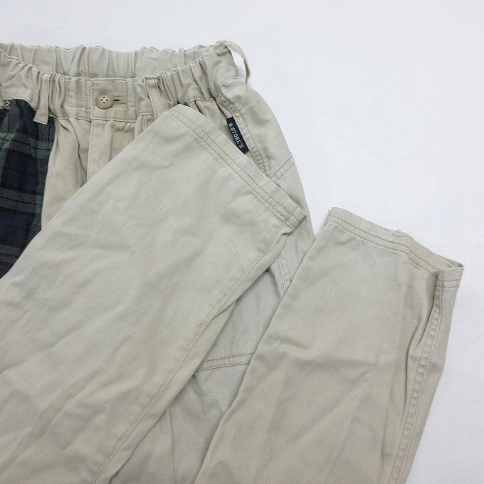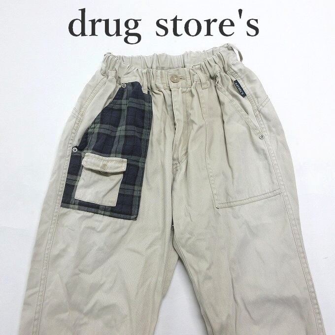 ■ドラッグストアーズ drug store's パンツ テーパードパンツ ベージュ チェック柄 ウエストゴム サイズS レディース ジップ[BY2594