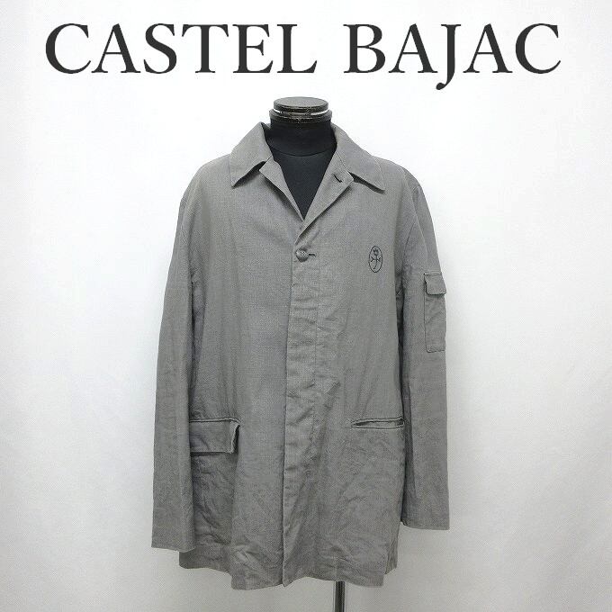 人気の■CASTEL BAJAC カステルバジャック リネン ジャケット 麻 アウター ボタン グレー 刺繍ロゴ ワンポイント メンズ テーラード[BY2599です。