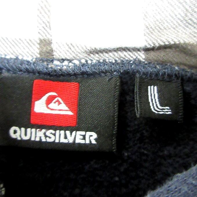 ■QUICKSILVER クイックシルバー パーカー トップス スウェット トレーナー ブラック フーディー サイズL チェック柄 ビックロゴ[BY2607