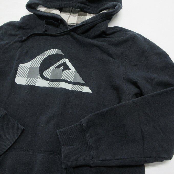 人気の■QUICKSILVER クイックシルバー パーカー トップス スウェット トレーナー ブラック フーディー サイズL チェック柄 ビックロゴ[BY2607です。