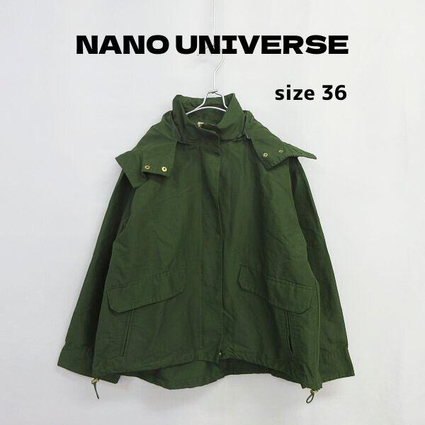 人気の■NANO UNIVERSE/ナノユニバースミドル丈 フード ジャケット グリーン 36 [KD0423です。