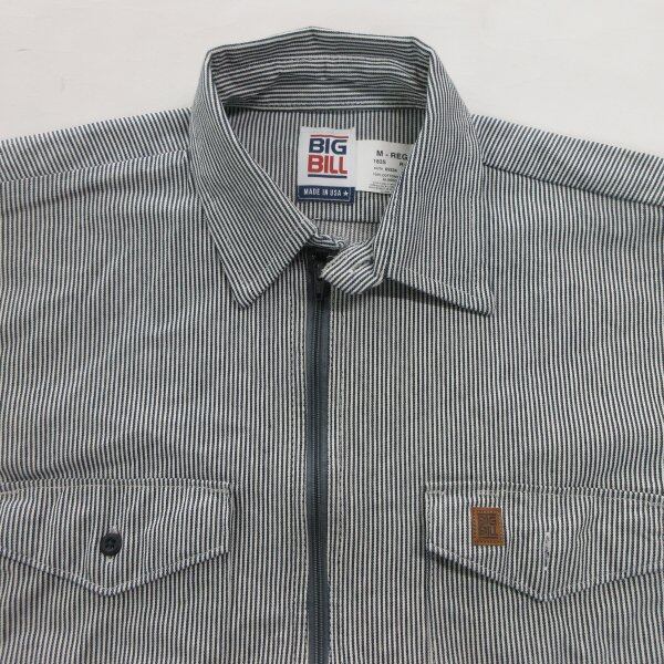 人気の■BIG BILL ストライプ ワークシャツ 半袖 ビンテージ M フルジップ [KD0480です。