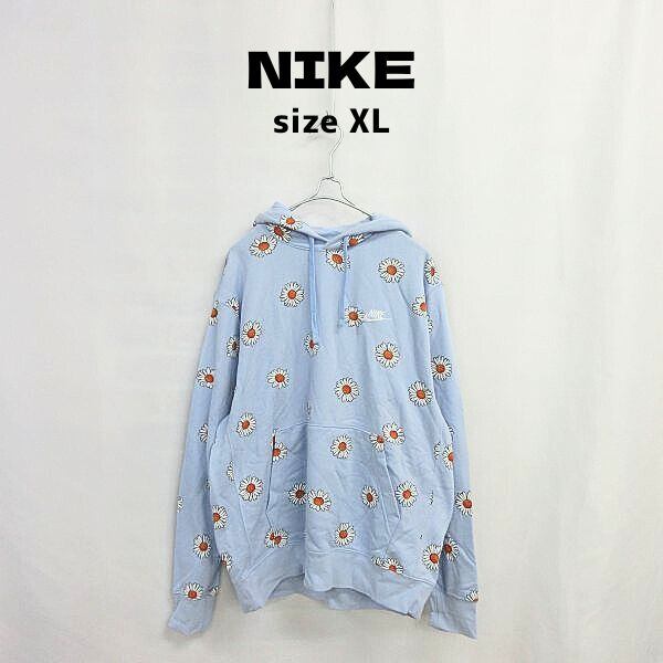 人気の■NIKE/ナイキ 総花柄 フーディ ライトブルー パーカー XL [KD0784です。