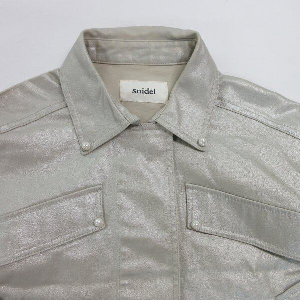 人気の■Snidel/スナイデル ストレッチ クロップド丈 ジャケット 光沢 ビジュー F [KD0912です。