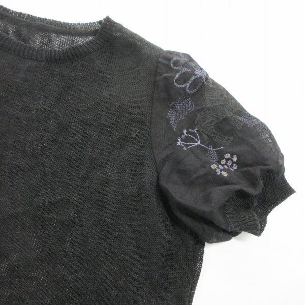 ■伊太利屋/イタリヤ 半袖 ニット 刺繍 カットソー ブラック 13 [KD0950