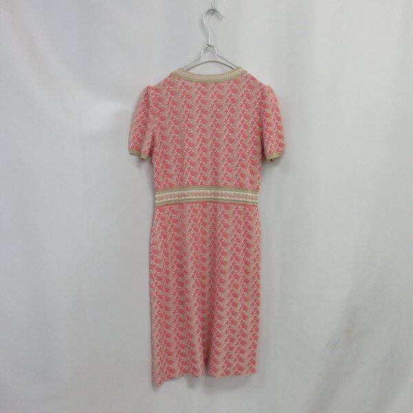 ■ungaro/ウンガロ 薄手ニット 半袖 ワンピース L ピンク ウエストリボン [KD1111