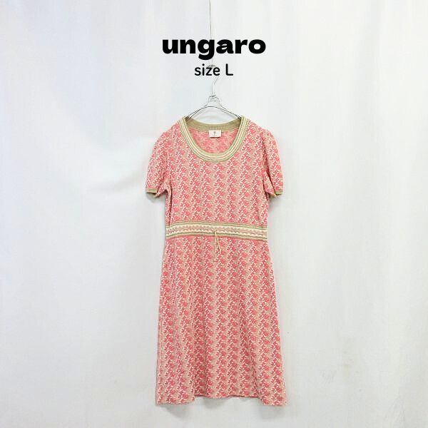 人気の■ungaro/ウンガロ 薄手ニット 半袖 ワンピース L ピンク ウエストリボン [KD1111です。