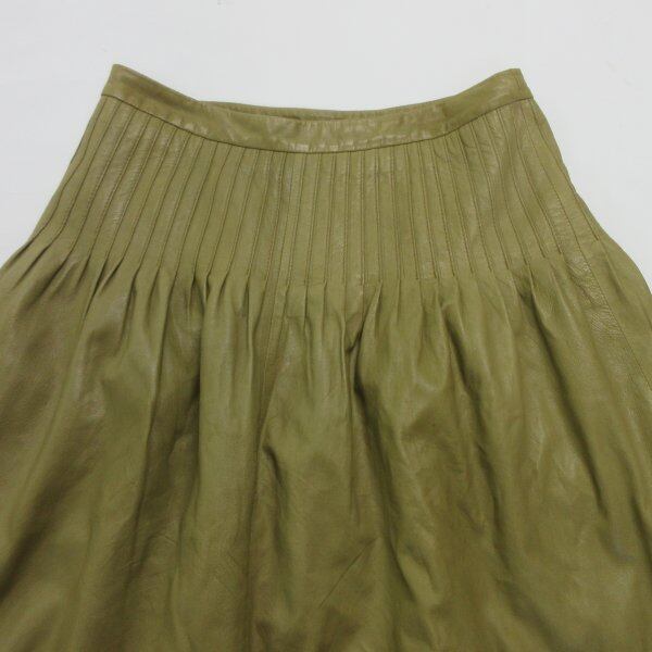 ■maricel 羊革 膝下 スカート カーキ レザー [KD1159
