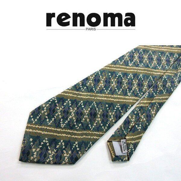 商品詳細: ( ●renoma/レノマ●総柄 幾何学柄 ネクタイ シルク/青緑×マルチ系[HX1571 )