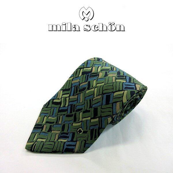 商品詳細: ( ●mila schon/ミラショーン●総柄 グラフィック柄 シルク ネクタイ/グリーン×紺系[HX1637 )