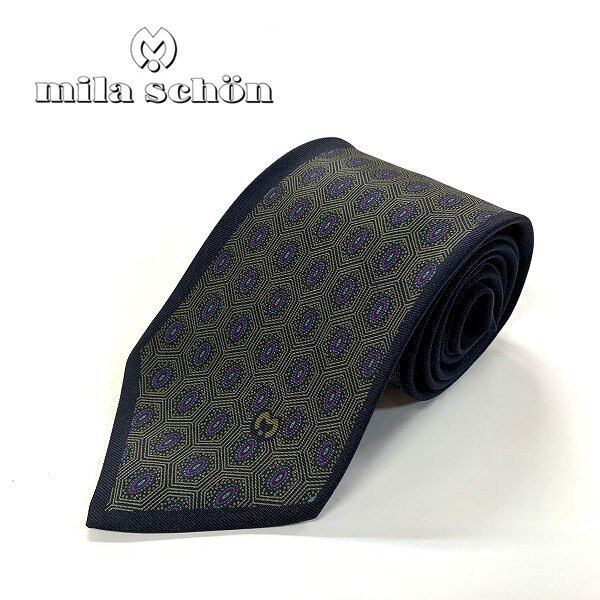 商品詳細: ( ●mila schon/ミラショーン●送無★総柄 小紋柄 伊製 ネクタイ シルク/濃紺×紫系[HX1952 )