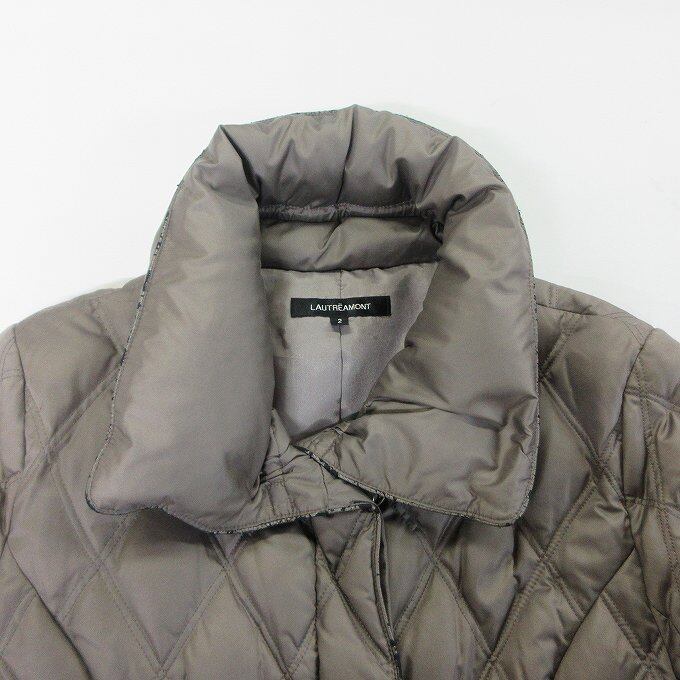 人気の■LAUTRE AMONT ロートレアモン キルティング ダイヤキルト ダウンコート ベルト付き サイズ2 モカカラー ボリューム襟[BY1381です。