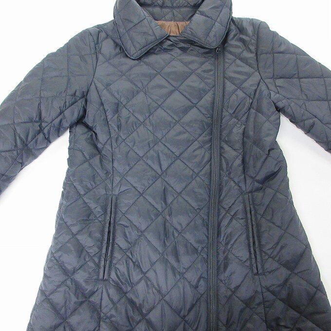 人気の■Mocassin ダウンコート ジュンコシマダ 軽量 中綿キルティング ミドルジャケット ネイビー サイズ1 ジップアップ[BY1347です。