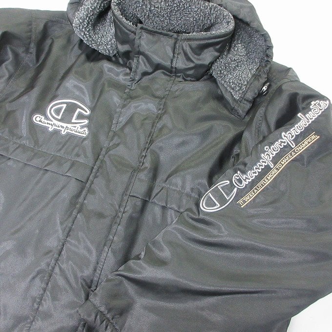 人気の■Champion チャンピオン Autthentic athletic ベンチコート アウター 防寒 サイズM ロング丈 キルト スリーブロゴ 中綿ジャケット[BY1417です。