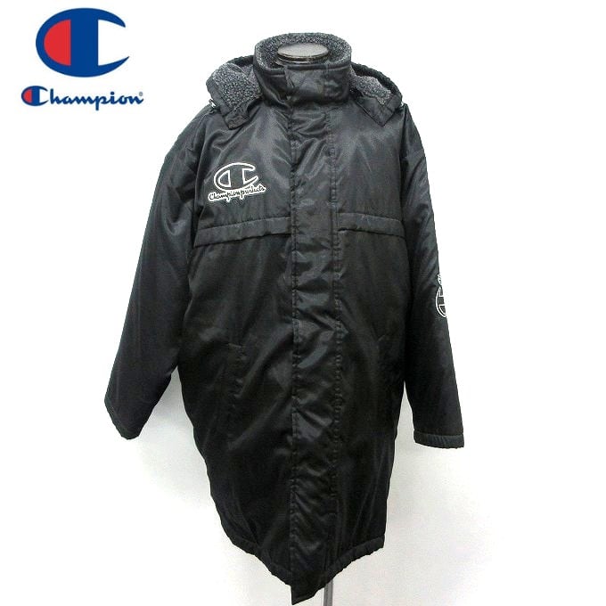 ■Champion チャンピオン Autthentic athletic ベンチコート アウター 防寒 サイズM ロング丈 キルト スリーブロゴ 中綿ジャケット[BY1417