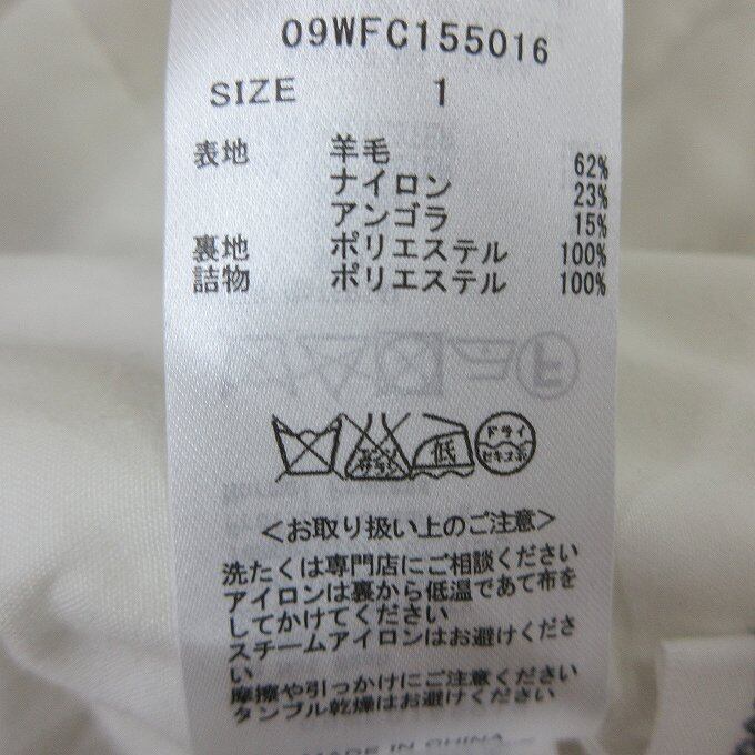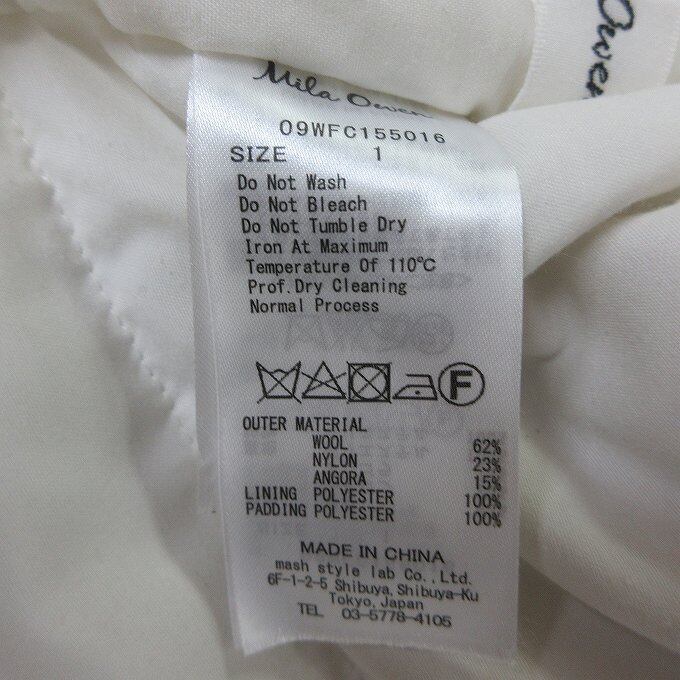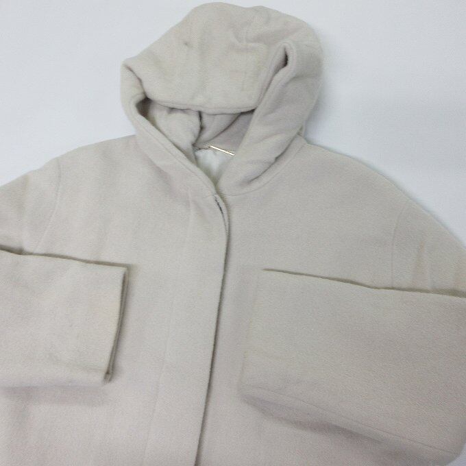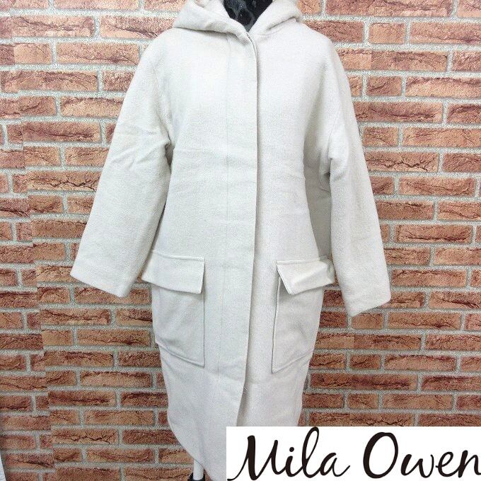 ■Mila Owenミラオーウェン コート ロングコート アンゴラ ノーカラーコート サイズ1 ホワイトベージュ ボタン フード付き 中綿[BY1456