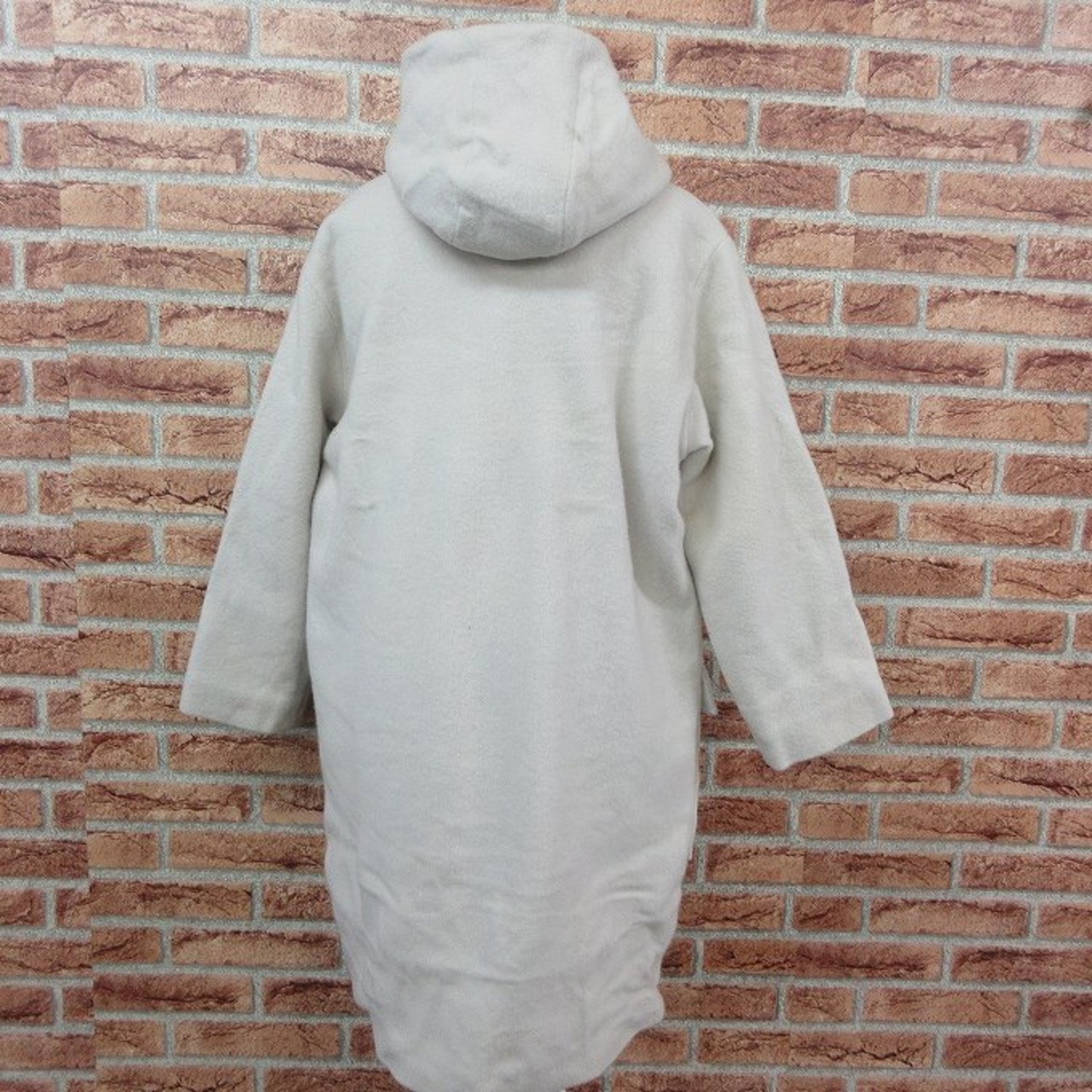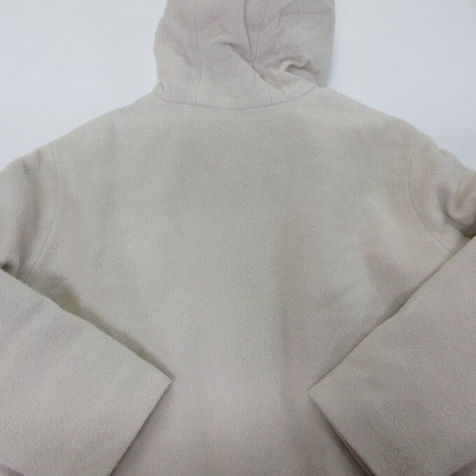 人気の■Mila Owenミラオーウェン コート ロングコート アンゴラ ノーカラーコート サイズ1 ホワイトベージュ ボタン フード付き 中綿[BY1456です。