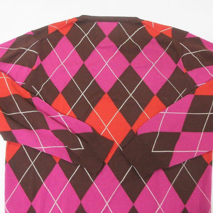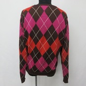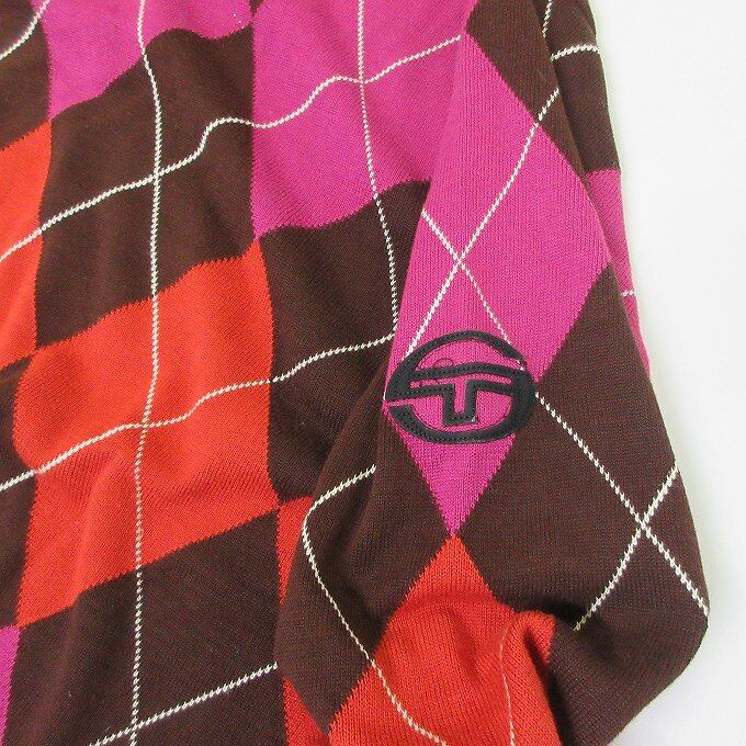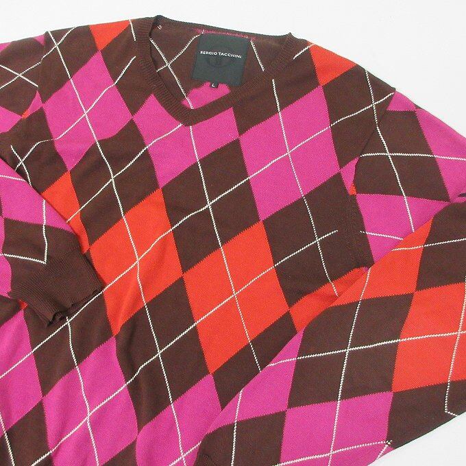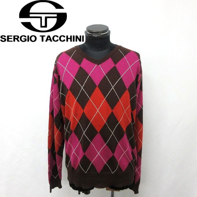 人気の■SERGIO TACCHINI/セルジオタッキーニ ニット アーガイル柄 ブラウン 長袖 Vネック シルク混 メンズL ユニセックス[BY1451です。