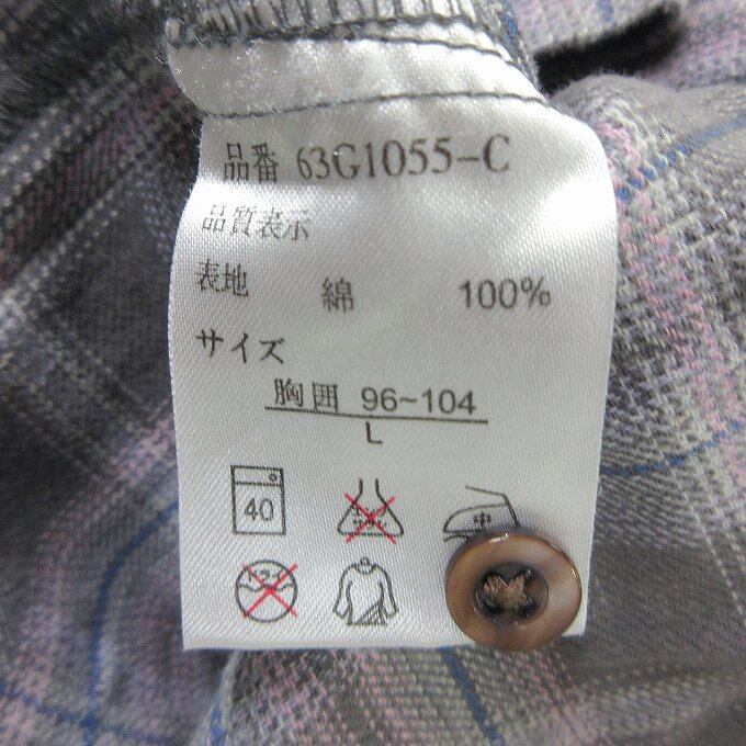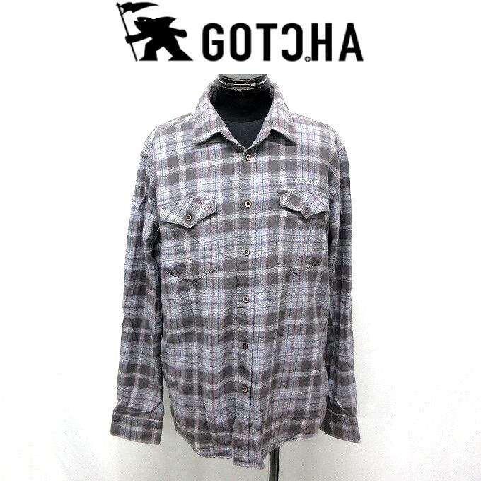 ■GOTCHA ガッチャ シャツ サイズL チェック柄 グレー パープル 長袖 ボタン メンズ コットン100%[BY1519