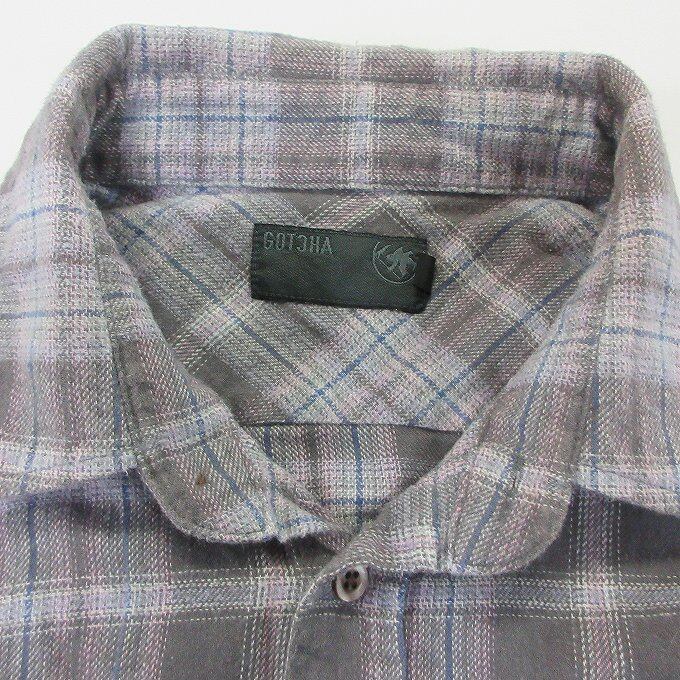 人気の■GOTCHA ガッチャ シャツ サイズL チェック柄 グレー パープル 長袖 ボタン メンズ コットン100%[BY1519です。