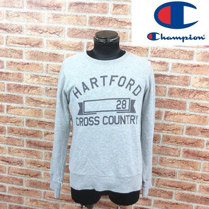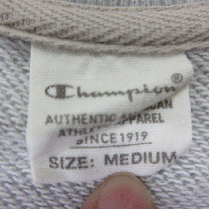 人気の■Champion チャンピオン トレーナー スウェット ライトグレー サイズM コットン スリーブロゴ 丸首 長袖[BY1521です。