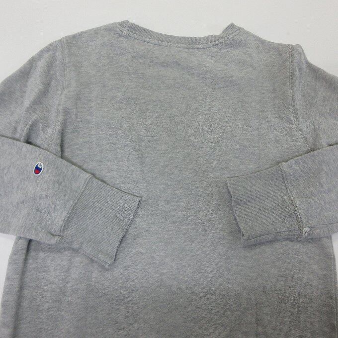 ■Champion チャンピオン トレーナー スウェット ライトグレー サイズM コットン スリーブロゴ 丸首 長袖[BY1521