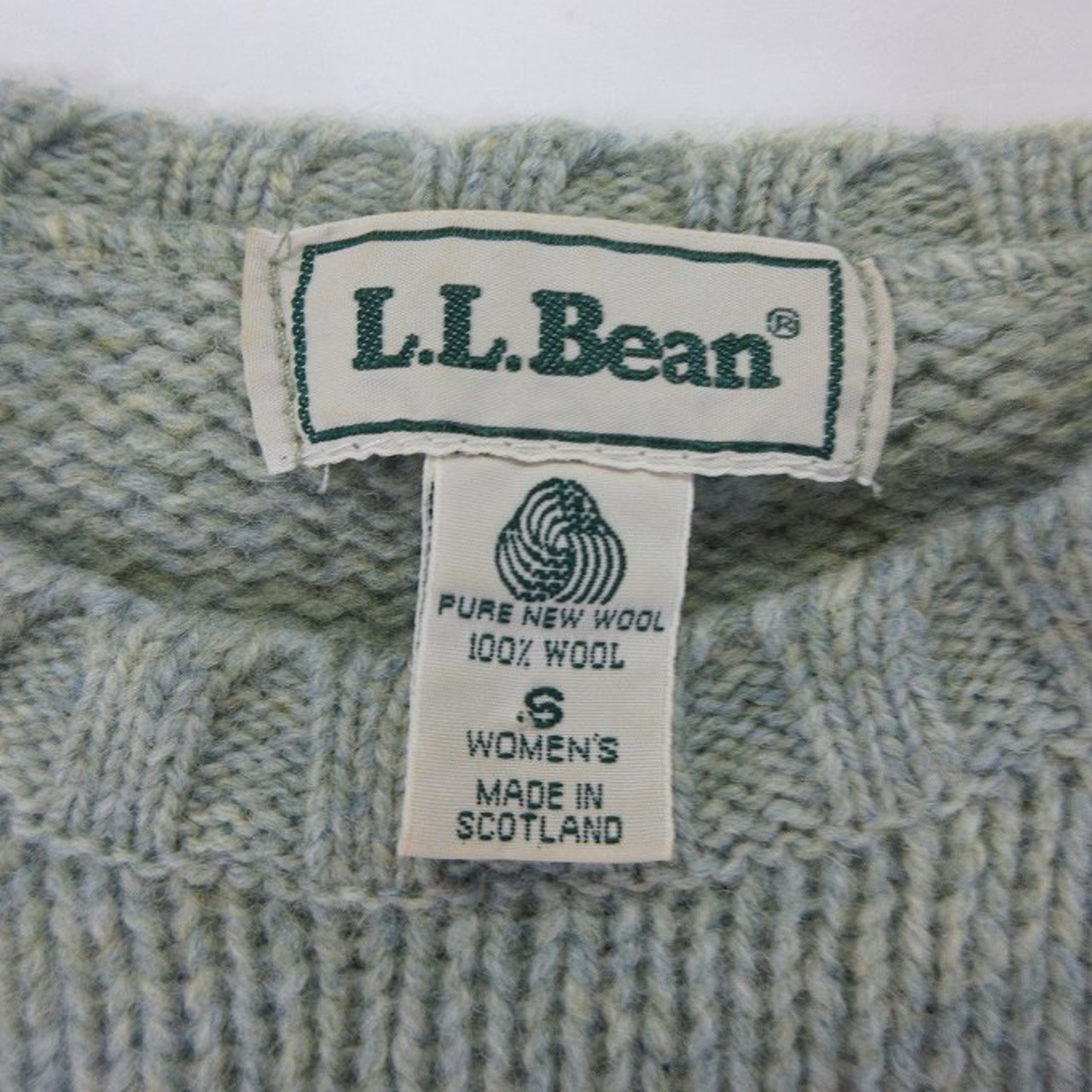 ■L.L.Bean 70〜80s エルエルビーン ニットセーター ウール グリーン サイズS ウィメンズ 長袖 丸首 厚手 オールド スコットランド[BY1561