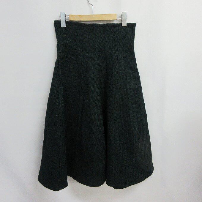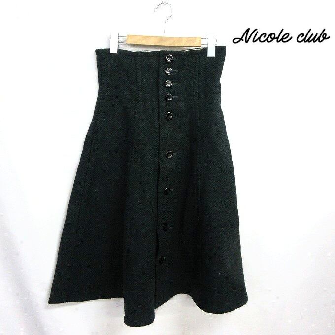 人気の■ニコルクラブ NICOLE CLUB スカート フレア ウール グリーン ボタン ハイウエスト ポケット 付属ボタン ウィメンズ[BY1577です。