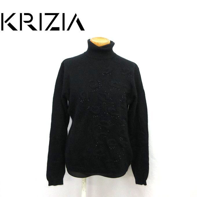 人気の■KRIZIA クリツィア アンゴラ ニット セーター タートルネック ウール 刺繍 アニマル ふわふわ サイズL[BY1344です。