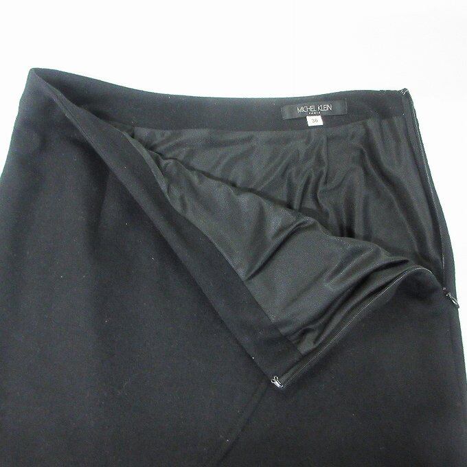 人気の■MICHEL KLEIN ミッシェルクラン スカート ウール ひざ丈 裾デザイン サイドジップ サイズ36 ウィメンズ 美品[BY1353です。