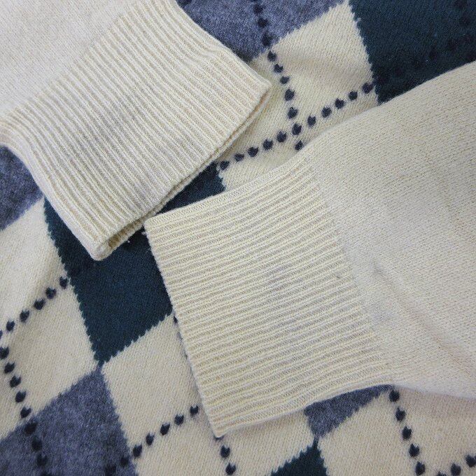 ■MUNSINGWEAR マンシングウェア グランドセラム ニット Vネック アーガイル柄 イエロー 長袖 セーター ウール ゴルフ[BY1365