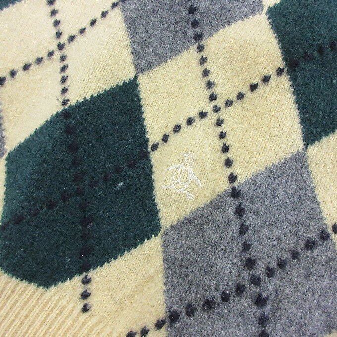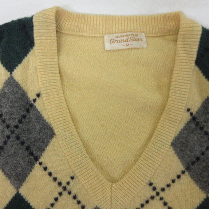 人気の■MUNSINGWEAR マンシングウェア グランドセラム ニット Vネック アーガイル柄 イエロー 長袖 セーター ウール ゴルフ[BY1365です。
