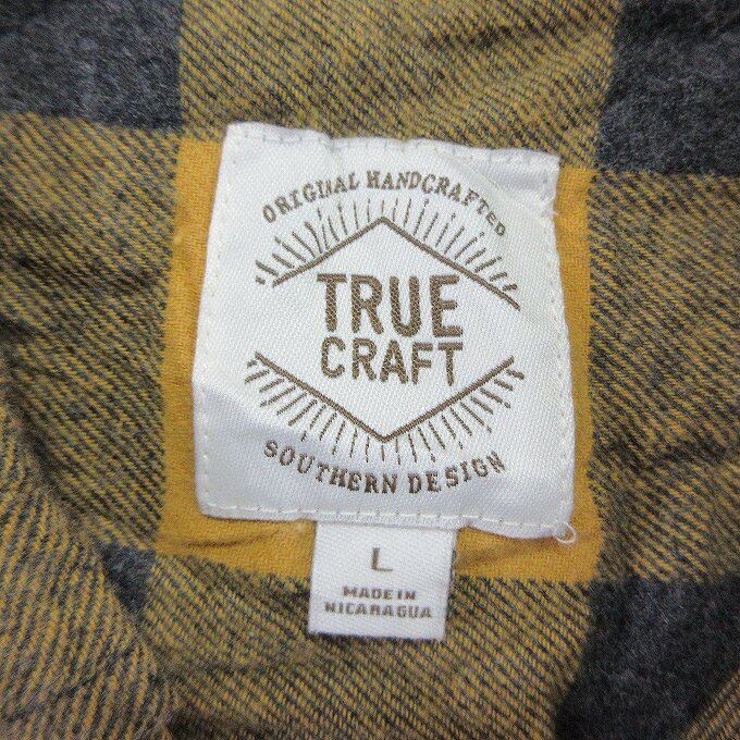 人気の■usa古着 TRUECRAFT ネルシャツ インポート 長袖 シャツ チェック柄 イエロー ボタン サイズL メンズ ユニセックス[BY1679です。