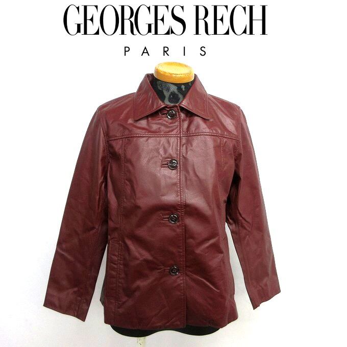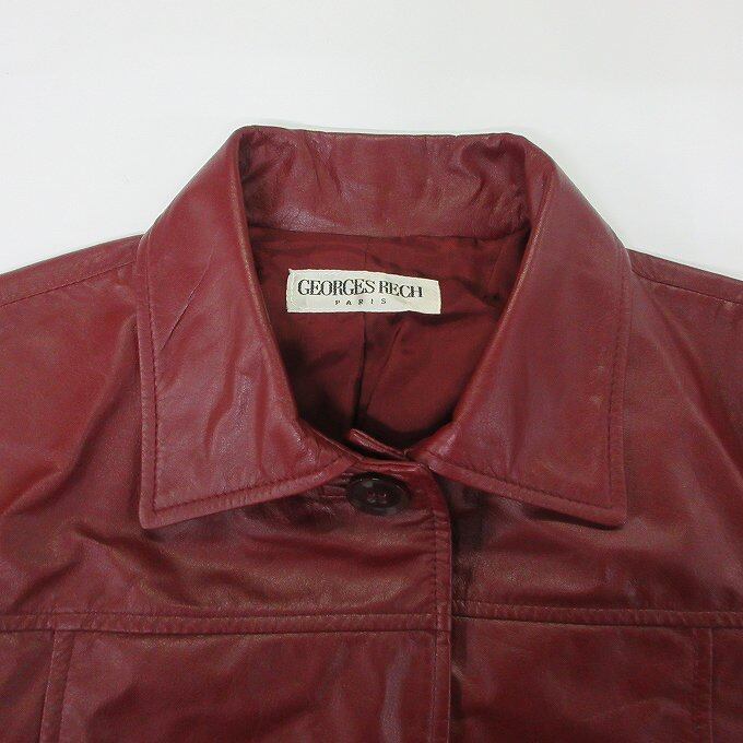■georges rech ジョルジュレッシュ レザージャケット レッド ボタン ヴィンテージ 牛革 サイズS アウター スプリングコート[BY1541