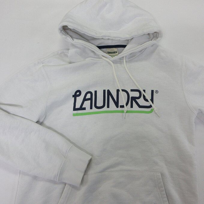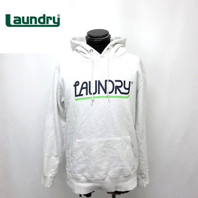 人気の■LAUNDRY ランドリー パーカー プルオーバー スウェット ロゴ フーディー コットン ホワイト メンズ サイズM[BY1558です。