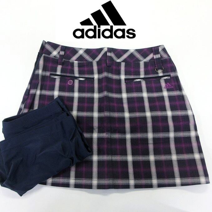 人気の■adidas アディダス スカート Golf ゴルフ ウェア 台形スカート チェック柄 インナー付き サイズM プリーツスカート ウィメンズ[BY1724です。