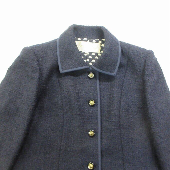 ■SAINTE LAPINE ラピーヌ ジャケット ツィード ネイビー ボタン 裏地 サイズ7 式典 卒業式 入学式 ウィメンズBY1582