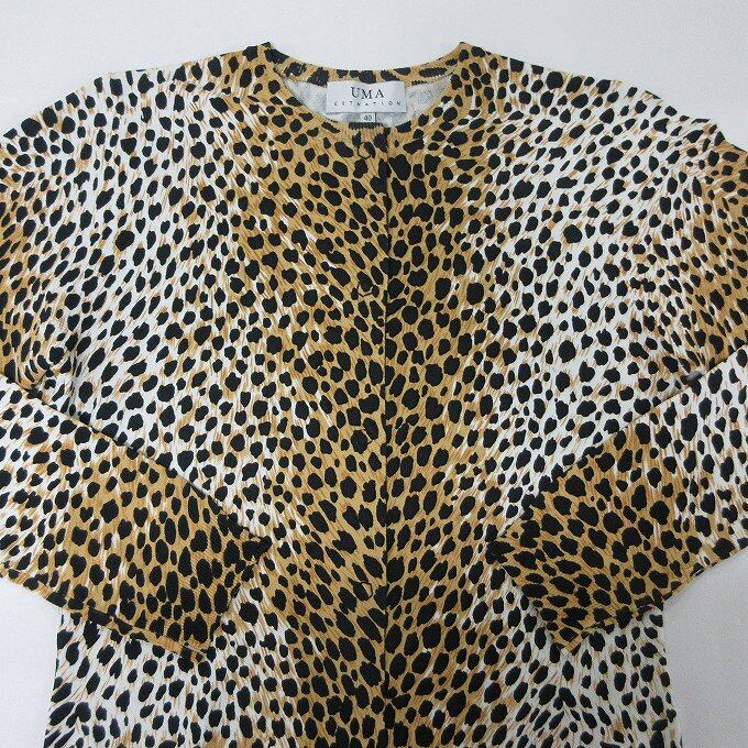 人気の■タグ付き UMA ESTNATION ユマ エストネーション カーディガン ストレッチ アニマル柄 40 長袖 丸首 トップス ヒョウ柄[BY1834です。