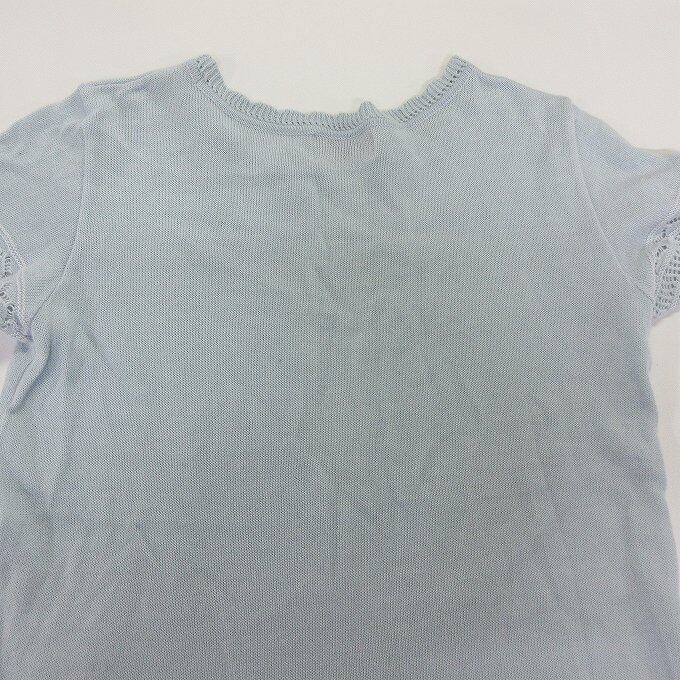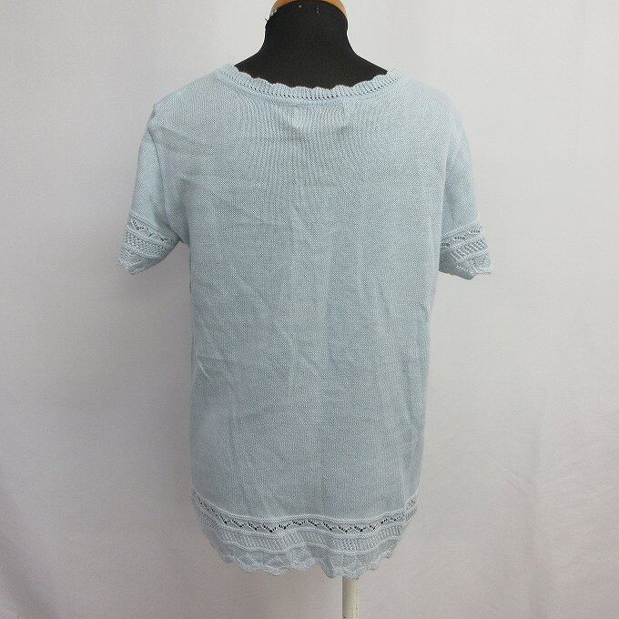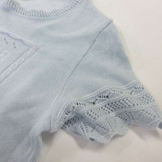 人気の■McGREGOR マックレガー サマーニット サイズM ウィメンズ パステルブルー フリル 丸首 半袖 春夏 デコルテ[BY1594です。