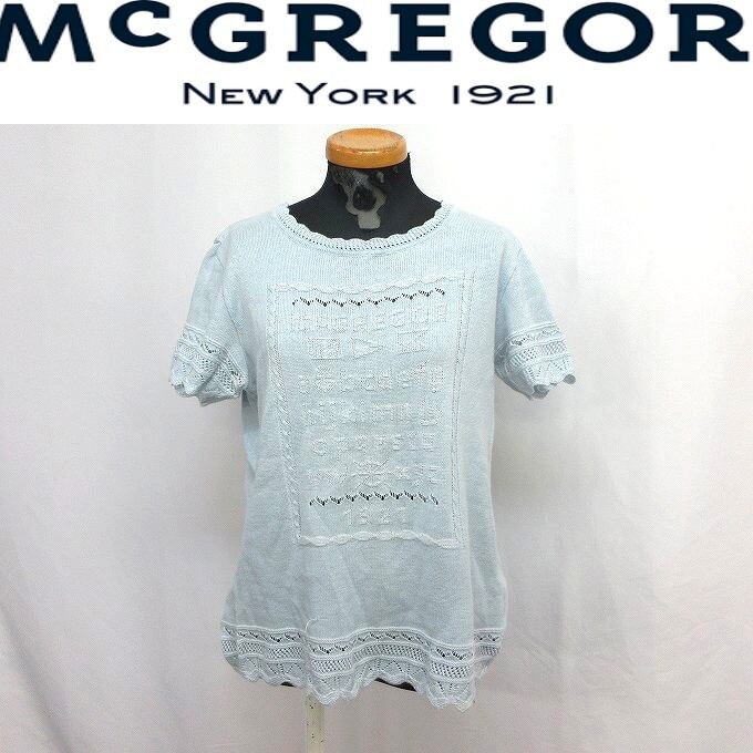 ■McGREGOR マックレガー サマーニット サイズM ウィメンズ パステルブルー フリル 丸首 半袖 春夏 デコルテ[BY1594