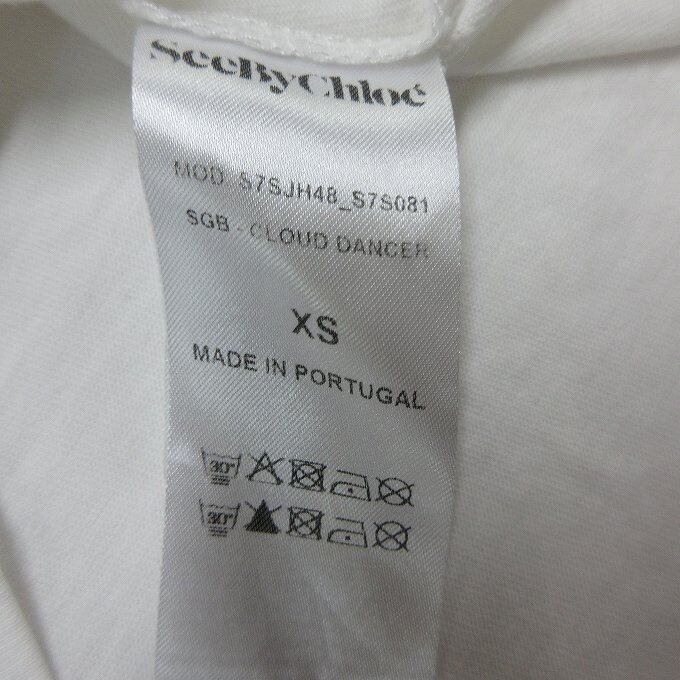 人気の■See by Chloe シーバイクロエ Tシャツ 丸首 スリーブ フリル ホワイト コットン 訳アリ サイズXS シンプル[BY1952です。