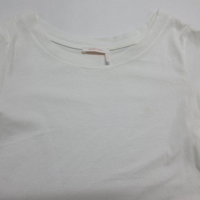 ■See by Chloe シーバイクロエ Tシャツ 丸首 スリーブ フリル ホワイト コットン 訳アリ サイズXS シンプル[BY1952