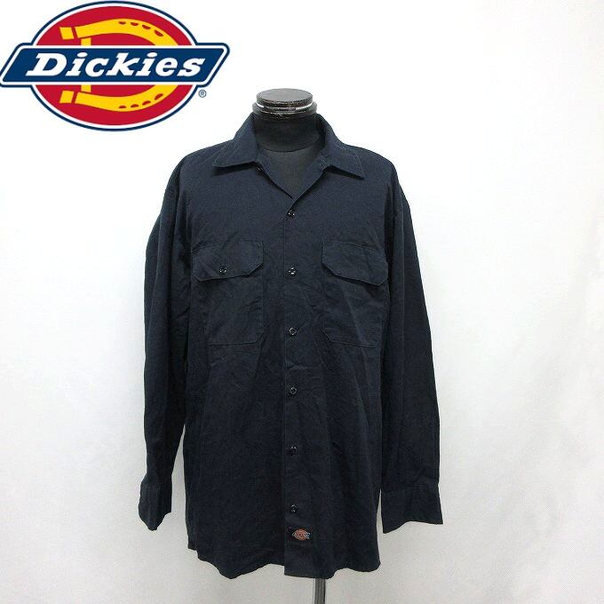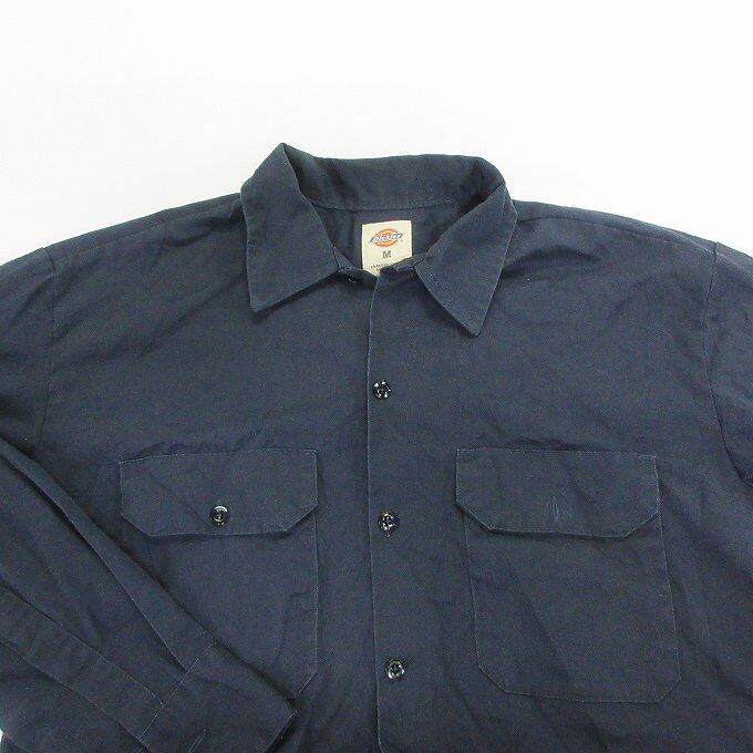 人気の■Dickies ディッキーズ ビッグシルエット ワークシャツ メキシコ製 ネイビー 長袖シャツ ボタン メンズ サイズM インポート古着 [BY1685です。