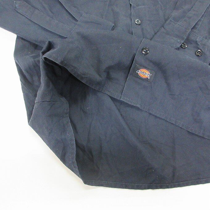 ■Dickies ディッキーズ ビッグシルエット ワークシャツ メキシコ製 ネイビー 長袖シャツ ボタン メンズ サイズM インポート古着 [BY1685