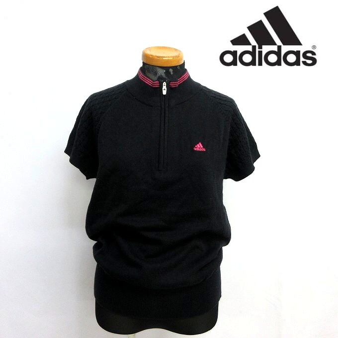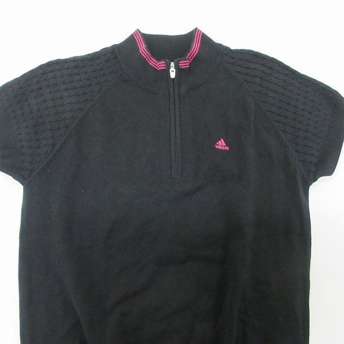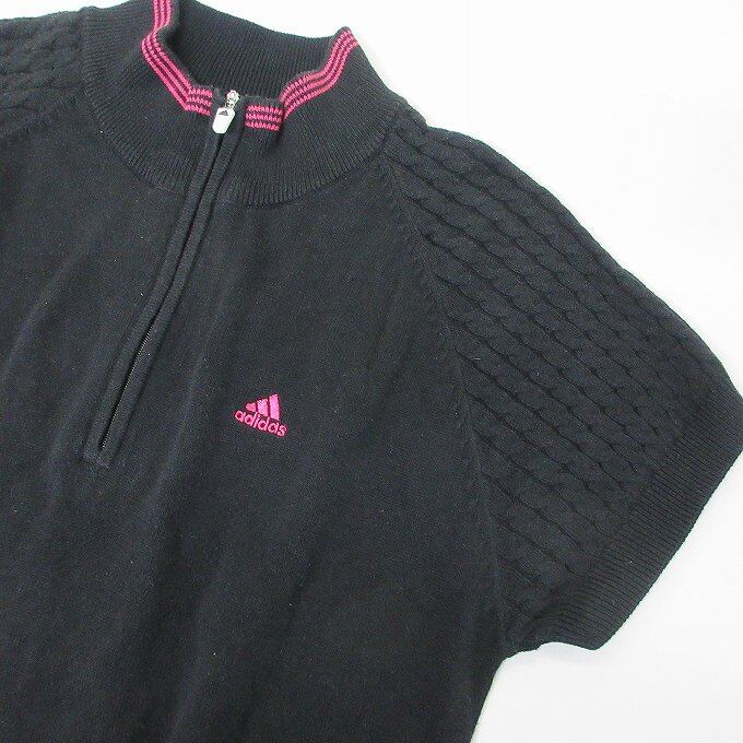 人気の■adidas アディダス トップス 半袖ニット ハーフジップ ゴルフ Golf ケーブル風 ブラック ピンク ウィメンズ サイズL スポーツ[BY1711です。