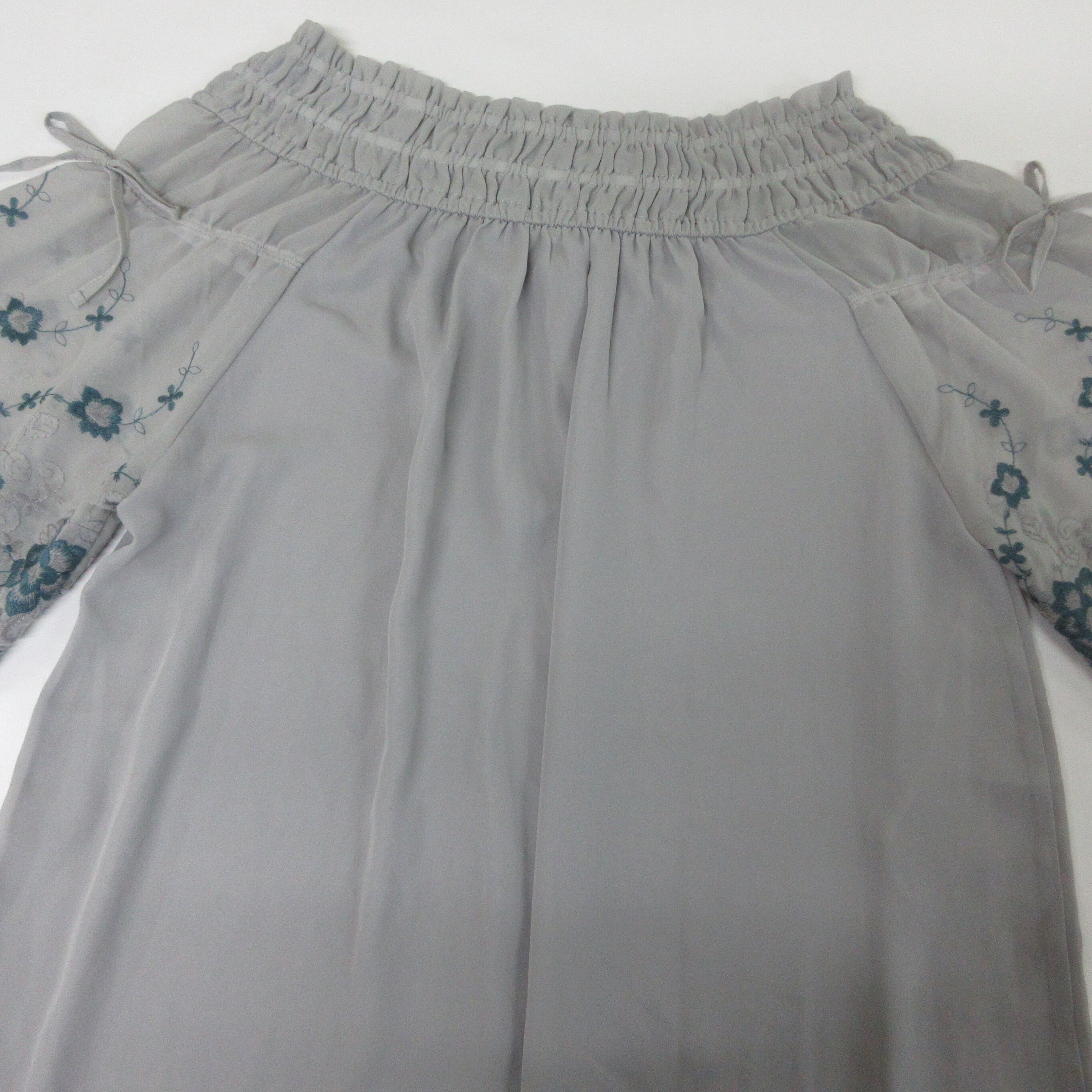 人気の■axes femme アクシーズファム オフショルダー チュニック トップス シースルー 刺繍 グレー ウィメンズ サイズF ガーリー[BY1821です。