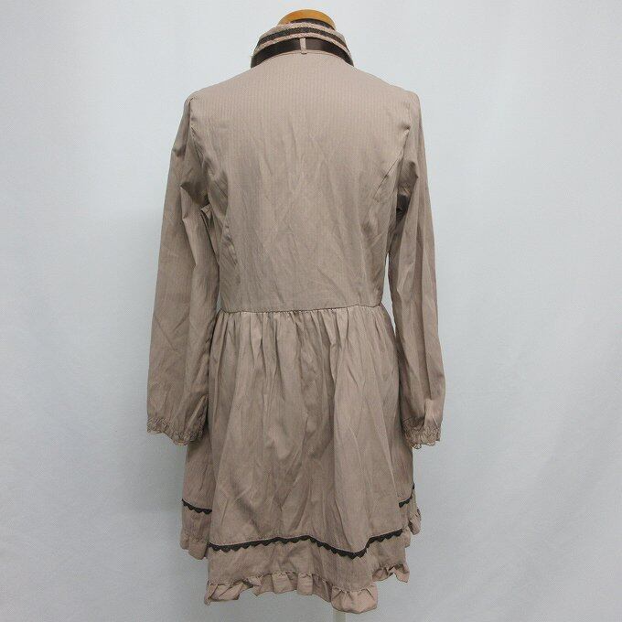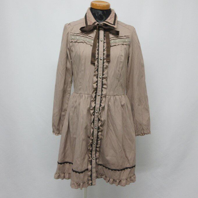 人気の■axes femme アクシーズファム ワンピース 長袖 リボン ボタンダウン くすみピンク サイズM ウィメンズ 襟レース[BY1789です。