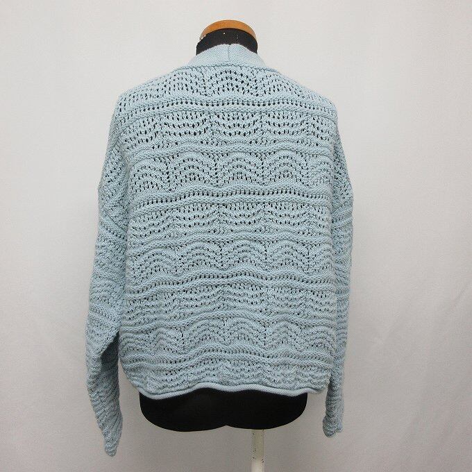■ZARA ザラ カギ編み カーディガン 春夏 ウィメンズ パステルブルー サイズM 前開き ドロップショルダー 良品 クロシェ編み[BY1692