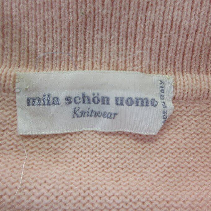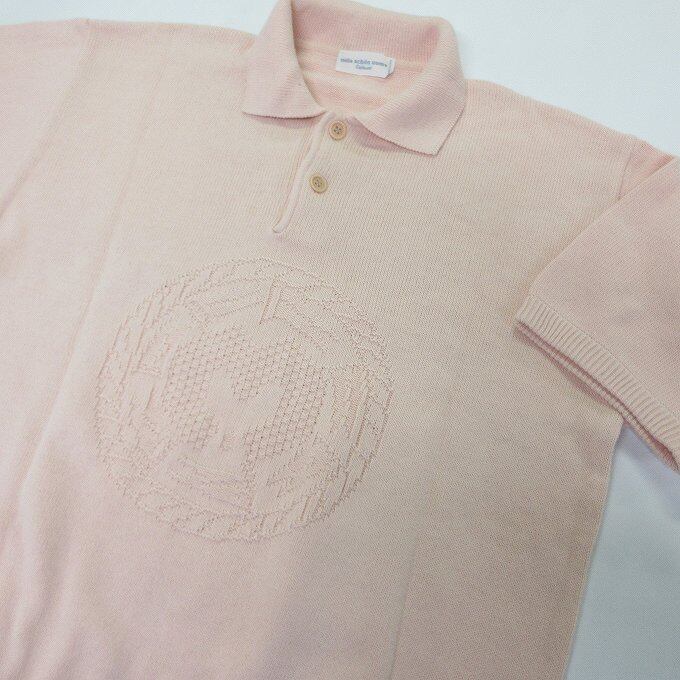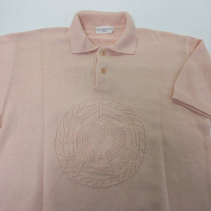 人気の■mila schon uono ミラショーン サマーニット ニット 半袖 ピンク ビッグロゴ 襟付き イタリア製 (メンズL相当)[BY1735です。