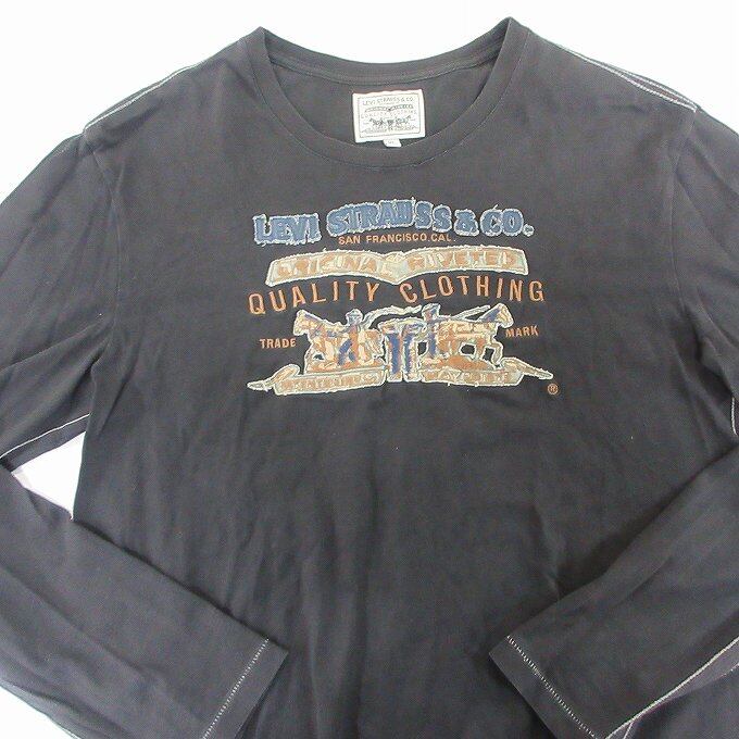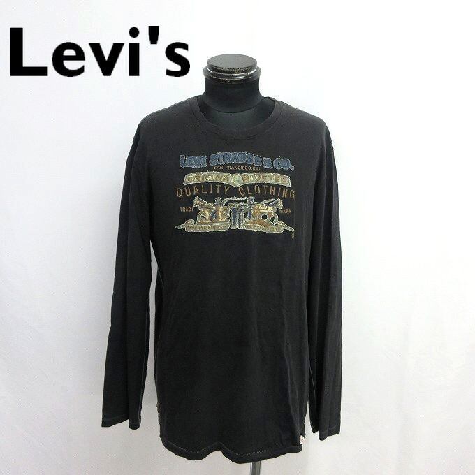 人気の■Levi's リーバイス ロンT ブラック 丸首 長袖 刺繍ロゴ コットン サイズXL メンズ カジュアル アメカジ ジーンズ デニム[BY1866です。